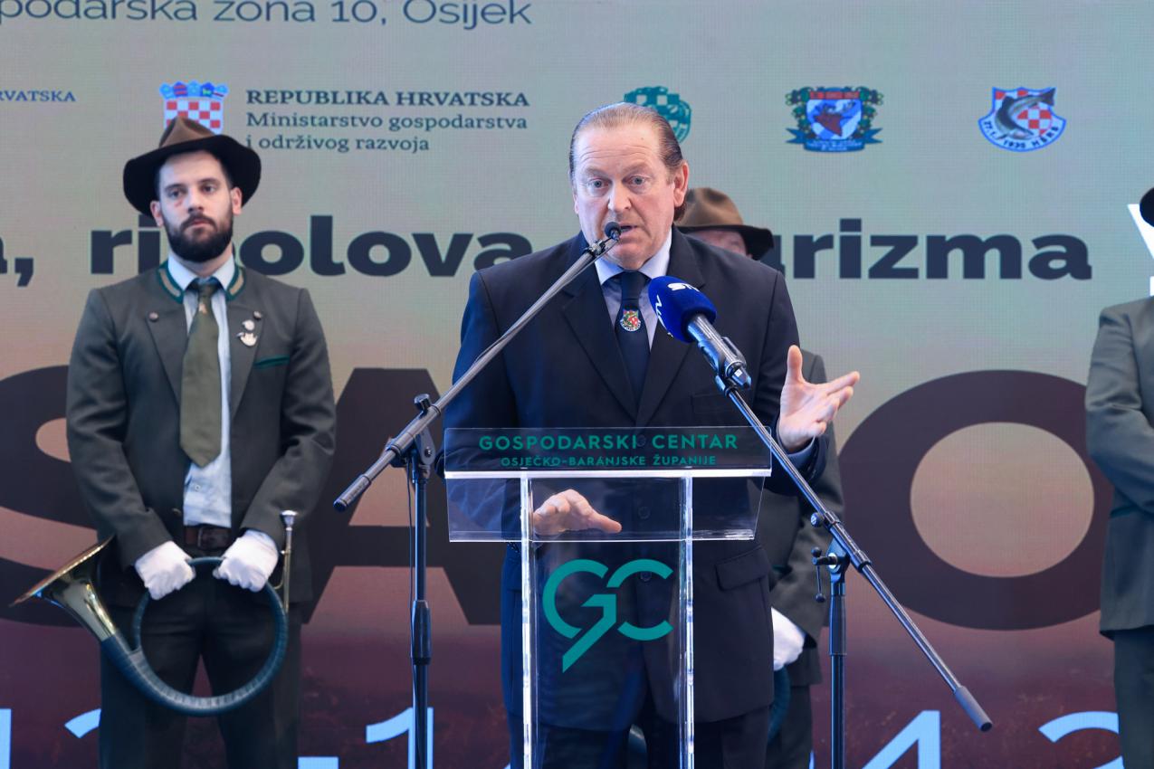 Državni tajnik Mladen Pavić smatra da je moderni prostor Gospodarskog centra Osječko-baranjske županije najbolja lokacija za održavanje Sajma posvećenog lovstvu i sportskom ribolovu. – Osječko-baranjska županija raspolaže s najkvalitetnijim lovištima, velikim bogatstvima voda i šuma te je ovo i u turističkoj promociji vrlo važna gospodarska grana jer Hrvatska ima gotovo 69.000 lovaca i više od 76.000 ribiča. Oba sektora, lovstvo i sportski ribolov, su prilično uređeni, pa će ova manifestacija pokazati sve čime Hrvatska raspolaže, a poglavito Osječko-baranjska županija – istaknuo je Pavić. Dodao je da u Hrvatskoj ima 1.065 lovišta, od toga je 107 u Osječko-baranjskoj županiji, i to 20-ak državnih, a ostalo su zajednička lovišta. Sva lovišta su vrlo kvalitetna po populaciji i raznolikosti divljači te prirodnom ambijentu.