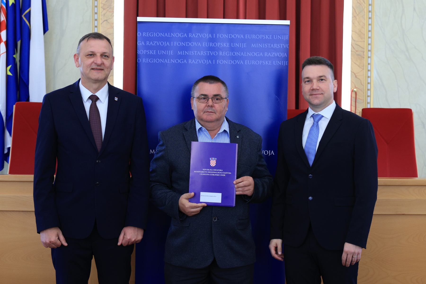 Općinskim načelnicima i gradonačelnicima ugovore je uručio državni tajnik Ministarstva regionalnog razvoja i fondova EU Domagoj Mikulić, a uspješnu realizaciju projekata svima je poželio obnašatelj dužnosti župana OBŽ Mato Lukić.