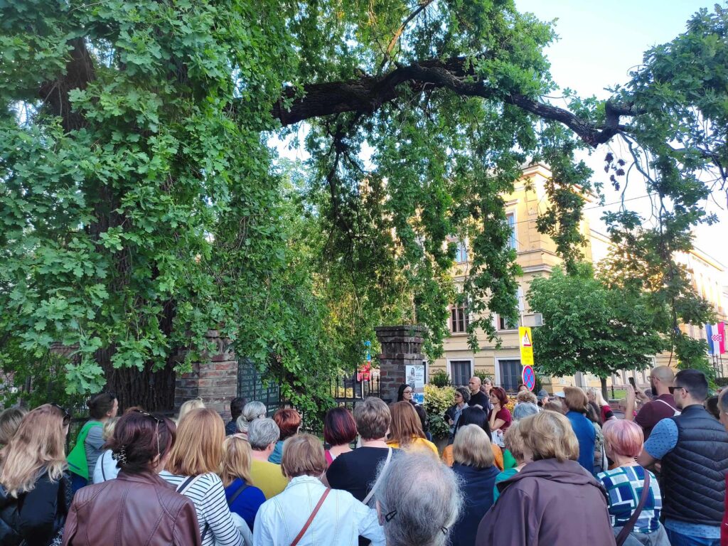 – Nakon ginka, kratka pauza bila je kod najstarije tramvajske stanice u Osijeku koja je već pet godina zaredom poznata galerija na otvorenom zahvaljujući projektu Udruge – Urbane intervencije. Šetnja se nastavila do ostatka nekadašnjeg Generalskog vrta, poznatog hrasta lužnjaka, gdje je voditeljica projekta “Osječki divovi” Ramona – Ana Davidović, istaknula karakteristike ali i zanimljivosti ovog relikta. Ovo stablo, staro otprilike 200 godina, nije samo uspomena na nekadašnji Generalski vrt koji se prostirao na čak 7 hektara već je i spomenik gradske hortikulture. Nakon hrasta na red su došla dva stabla tise, a šetnja se završila kod tise u parku Oscara Nemona čija je starost procijenjena na oko 170 godina.