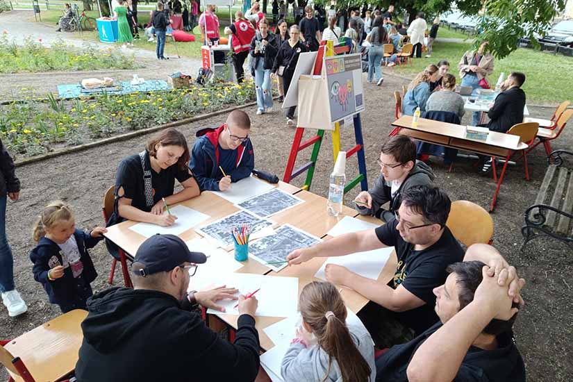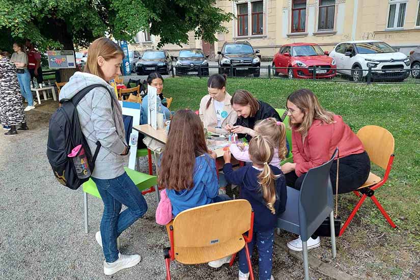 – Uz dobre ritmove koji su se širili s gramofonskih ploča, slikama našega grada i njezinih stanovnika zabilježenih očima naših sugrađana iz Ukrajine, mnogobrojni mladi i oni malo stariji koji su s nestrpljenjem iščekivali svoju privremenu tetovažu, mogli su zaigrati neku modernu društvenu igru ili odigrati online igru za bolji svijet, okušati se u stajanju na čavlima, akrobacijama na svili, ili naučiti nešto više o pružanju prve pomoći, izraditi svoje narukvice i čilati uz bezalkoholne koktele u piknik zoni.