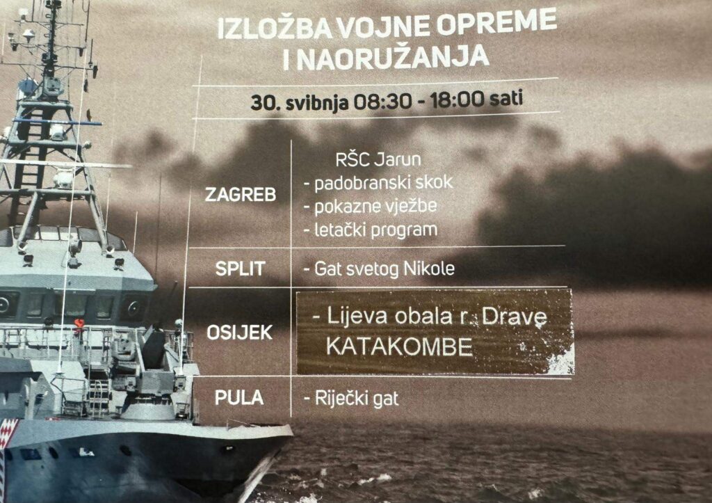 – Ministarstvo obrane RH (MORH) najavljuje obilježavanje Dana Hrvatske vojske Republike Hrvatske i Dana Hrvatske kopnene vojske s nizom događaja u Osijeku, Zagrebu, Splitu i Puli. Ministarstvo ovim putem poziva građane na izložbu TT zbora, odnosno taktičko-tehničke vojne opreme i naoružanja HV-a koja će se u Osijeku održati, u četvrtak, 30. svibnja, na lijevoj obali Drave kod Katakombi u vremenu od 8:30 do 18 sati. Ujedno će u 12 sati pripadnici HV-a podijeliti 1.500 porcija vojničkoga graha svim posjetiteljima – obavijest je MORH-a koju je proslijedio Grad Osijek, a evo kako je to bilo ranijih godina ‘kod Školjke’…