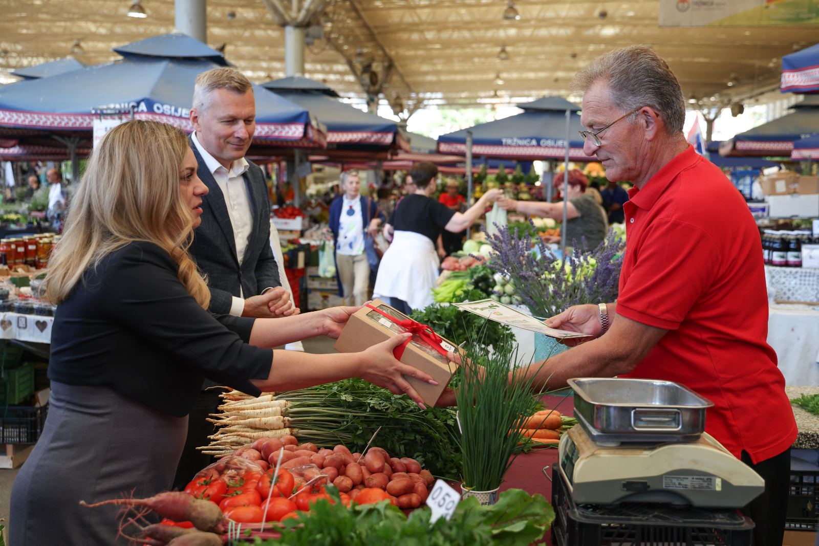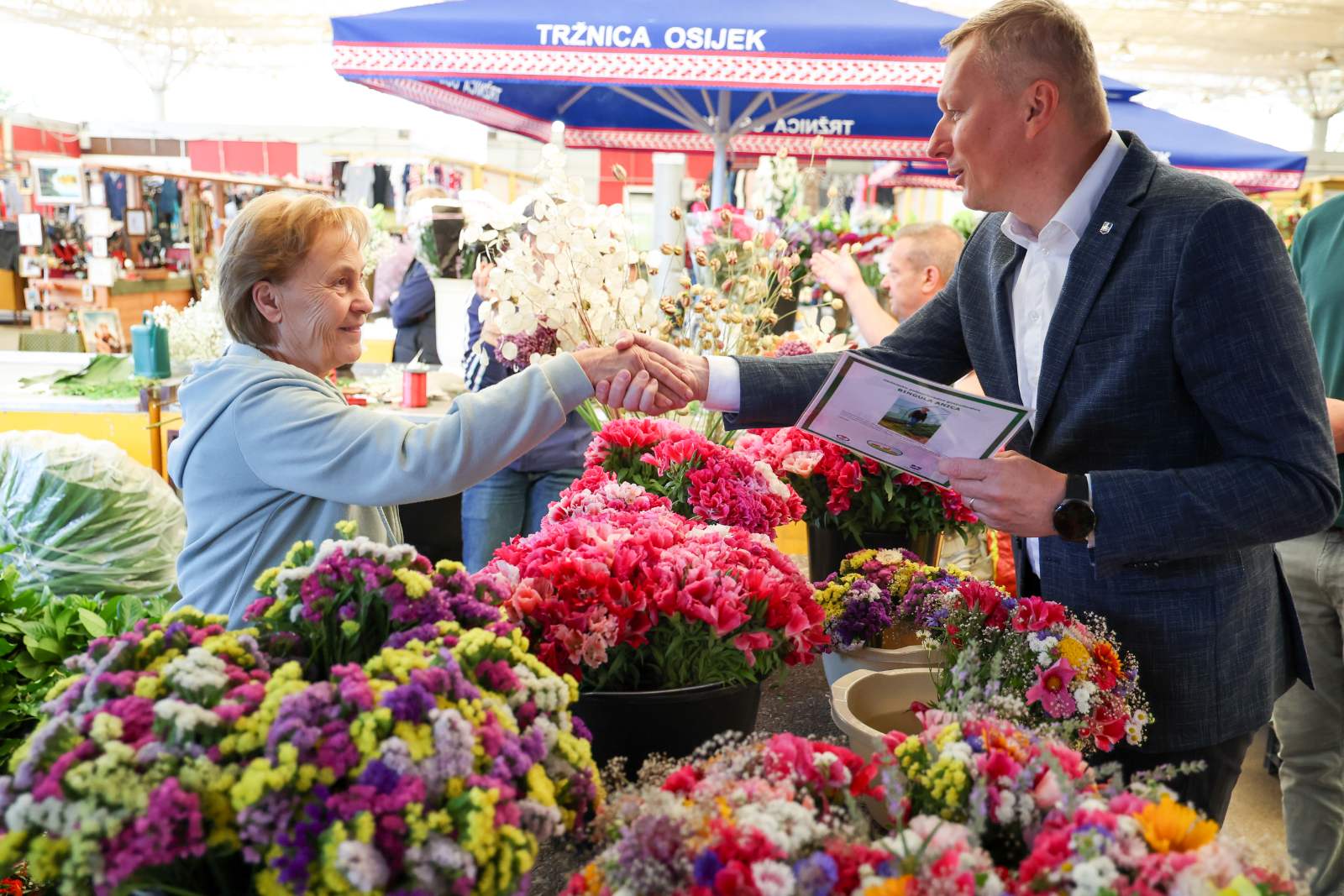 „Drago mi je da smo danas, šesnaesti put zaredom, ovdje na glavnoj osječkoj tržnici kako bismo podijelili certifikate „Proizvodi hrvatskoga seljaka“ koji se dodjeljuju našim proizvođačima u okolici Osijeka, a isto tako s područja cijele Slavonije i Baranje, a sve u okviru projekta koji provodi Tržnica u suradnji s Udrugom hrvatskih tržnica i Gradom Osijekom koji se zove „Certificiranje seljačkih tržnica“. Ovime podupiremo rast i razvoj naših malih, autohtonih obiteljskih poljoprivrednih gospodarstava, a s druge strane doprinosimo ubrzavanju dolazak proizvoda do naših sugrađana. Naglasio bih da je obnova ove tržnice strateški projekt Grada Osijeka, u sklopu Strategije razvoja Urbane aglomeracije gdje ćemo u projektnu dokumentaciju uložiti nekih 5,3 milijuna eura u sljedećem razdoblju, a uz samu tržnicu uredit ćemo i okolni prostor oko same tržnice.“, istaknuo je predsjednik Gradskog vijeća Florijančić.