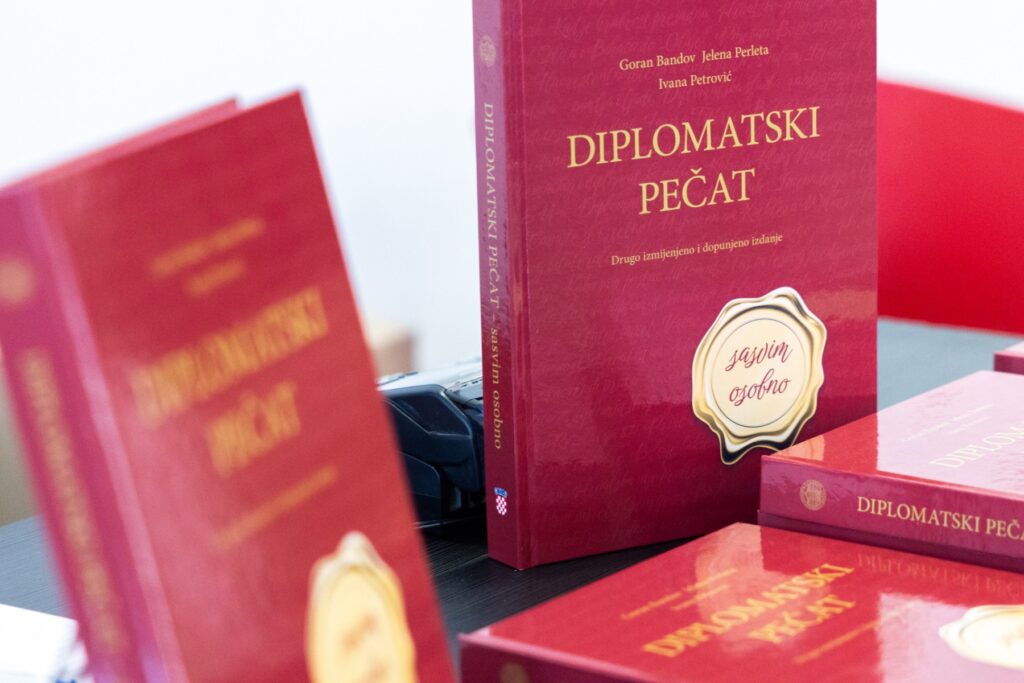 U osječkom Kulturnom centru, danas (21. lipnja 2024. godine) je održana promocija drugog dopunjenog izdanja knjige „Diplomatski pečat – sasvim osobno“ koja sadrži 130 priča i obuhvaća niz diplomatskih aktivnosti, razgovora i anegdota vezanih uz najznačajnije vanjskopolitičke događaje u Republici Hrvatskoj u zadnjih trideset godina, od borbe za međunarodno priznanje, uloge diplomacije u ratnim danima i ulaska u najznačajnije međunarodne organizacije i saveze do recentnih diplomatskih aktivnosti nakon hrvatskoga ulaska u Europsku uniju i NATO savez. Knjiga urednika prof. dr. sc. Gorana Bandova, Jelene Perlete i Ivane Petrović sastavljena je od kratkih diplomatskih sjećanja najznačajnijih vanjskopolitičkih aktera od 90-ih do danas. Promociji su nazočili obnašatelj dužnosti župana Mato Lukić, gradonačelnik Grada Osijeka Ivan Radić, rektor osječkog Sveučilišta prof. dr. sc. Vlado Guberac, zamjenik župana Josip Miletić, zamjenici gradonačelnika Grada Osijeka Jasenka Crnković i Dragan Vulin te ostali uvaženi gosti.