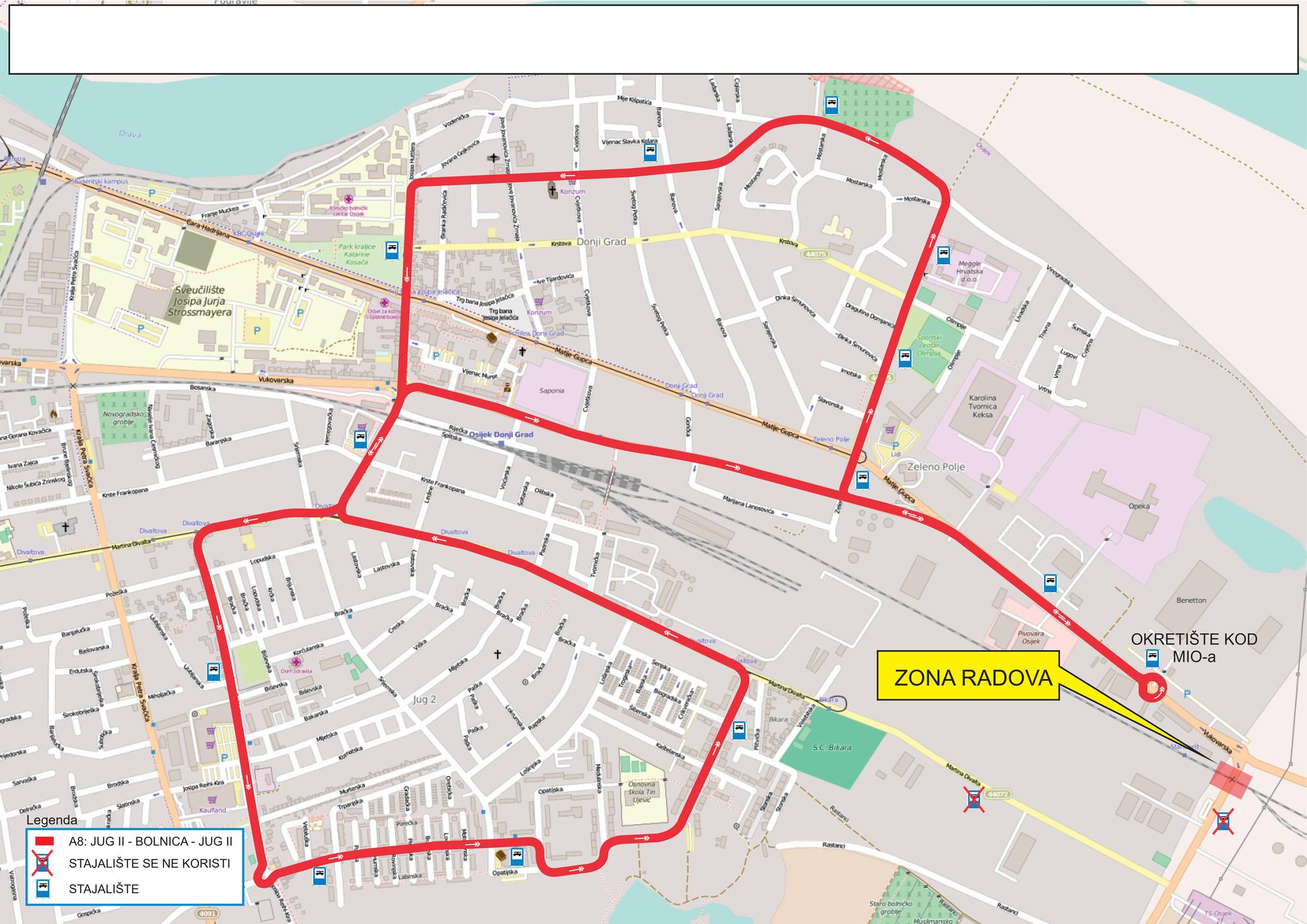 – S tim u svezi GPP je u obvezi preusmjeriti svoju autobusnu liniju A8 koja prometuje predmetnom dionicom prema slijedećem: