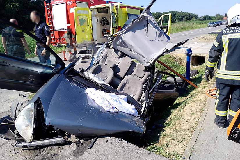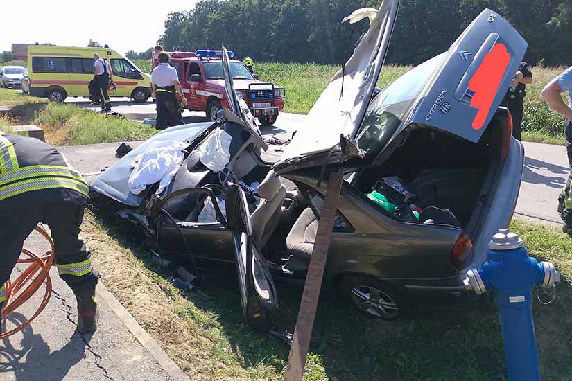 FOTO Vatrogasci rezali krov kako bi izvukli osobe iz vozila! Na vrućini se morali hladiti vodom iz cisterne…