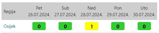 Veći dio Hrvatske već je osjetio i osjećat će jače novi ‘toplinski val’, a Osijek i Slavonija ‘izvlačili’ su se do danas, kada je DHMZ objavio novu tablicu po kojoj će ‘toplinski val’ stići i do nas, u nedjelju. Za sada je to upozorenje prvog stupnja, ‘žuto’, umjerena opasnost, ali je znakovito da će bar taj dan završiti ‘lagane noći’ s ispod 20 stupnjeva gdje se uz otvoren prozor spava ‘kao beba’.