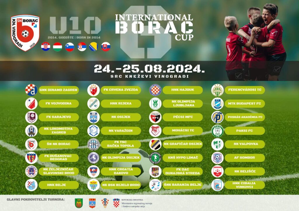 Škola nogometa NK Borac Kneževi Vinogradi i Općina Kneževi Vinogradi 24. i 25. kolovoza 2024. godine organiziraju 6. INTERNATIONAL BORAC CUP, koji će se održati na SRC Kneževi Vinogradi. Dvodnevna manifestacija okupit će djecu u kategoriji U10, rođenih u 2014. godini, iz najboljih regionalnih nogometnih klubova. I ove godine sudjeluju 32 ekipe iz 6 različitih država: Hrvatske, Srbije, Mađarske, Bosne i Hercegovine, Slovačke i Slovenije. Otvorenju natjecanja u subotu (24. kolovoza 2024. godine) nazočili su obnašatelj dužnosti župana Mato Lukić, državni tajnik u Ministarstvu regionalnog razvoja i fondova EU Domagoj Mikulić, načelnik Općine Kneževi Vinogradi Vedran Kramarić, dopredsjednik HNS-a Ante Vučemilović – Šimunović i ostali uvaženi gosti.