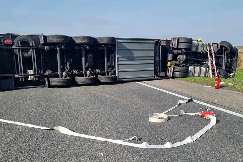 Na 113. kilometru, tvrde vatrogasci, nedaleko od Novske, na autocesti A3 preko cijelog jednog smjera, obje trake, kao i zaustavne, na boku leži kamion, šleper, pisali smo jučer. Fotografije s mjesta događaja prije oko dva sata objavili su vatrogasci Javne vatrogasne postrojbe Novska, a doznaje se kako je privremeno prekinut promet zbog prometne nesreće na autocesti A3 Bregana-Lipovac na 118.+050 km između čvorova Lipovljani i Kutina u smjeru Bregane,objavio je danas HAK.