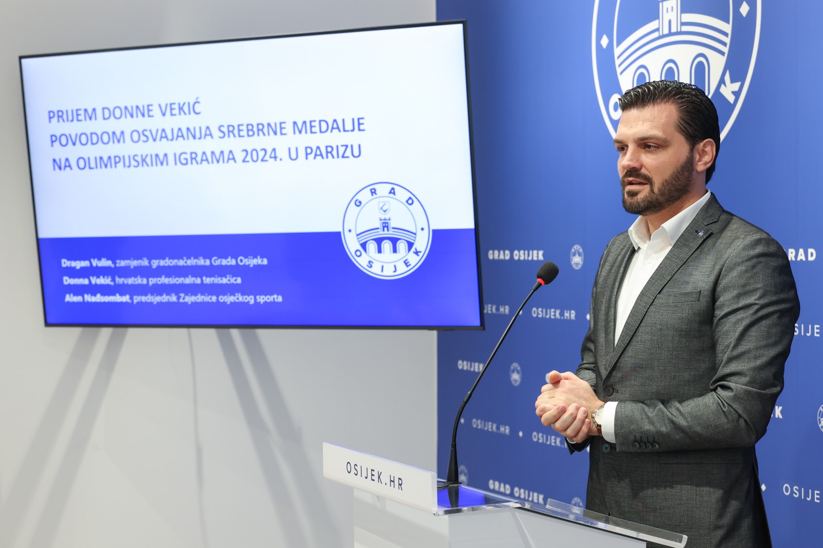 Povodom osvajanja srebrne medalje na Olimpijskim igrama u Parizu, zamjenik gradonačelnika Osijeka Dragan Vulin primio je u utorak osječku tenisačicu Donnu Vekić te joj uz čestitke uručio i ček od 10.000 eura za izniman sportski uspjeh.