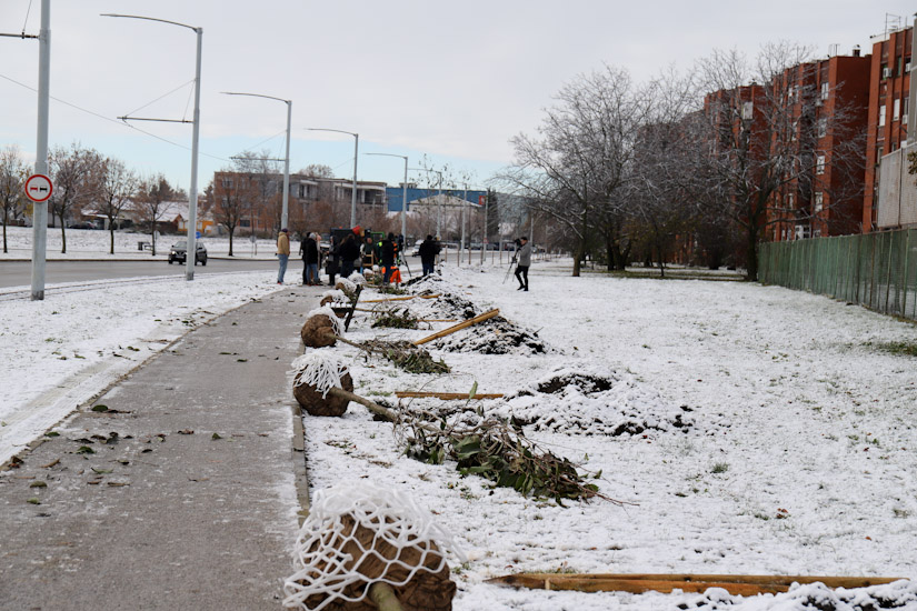 Europski standardi kažu može, vrijeme je idealno, poučila nas je Unikomova ‘prva violina’ sadnje, magistra urbanog šumarstva i stručnjakinja za praćenje i njegu urbanih stabala u Unikomu Iva Matačić, dodajući i kako ove johe i grab, iako autohtoni, imaju odgovarajuće karakteristike da u budućnosti ne smetaju tramvajskom prometu, da trpe i sol sa cesta, da su osmišljeni kako bi ovdje ponudili hlad. Dobro trpe i eventualnu sušu, a zalijevat će ih se ljeti, svakako. Dakle, počelo je! Danas su zasađena prva stabla od više od 1.700 koliko će biti zasađeno u sklopu projekta ozelenjivanja urbanih površina – gradskih ulica i ozelenjivanja periurbanih površina – prigradskih naselja, za koje su Gradu Osijeku odobrena sredstva Fonda za zaštitu okoliša i energetsku učinkovitost putem Javnog poziva za neposredno sufinanciranje provedbe mjera prilagodbe klimatskim promjenama u svrhu jačanja otpornosti urbanih sredina. A, bit će ih do proljeća i 2.500, u ovom mandatu gradonačelnika Ivana Radića i više od petine ukupnog gradskog fonda stabala…
