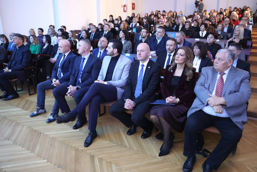 – Danas obilježavamo 49 godina rada i djelovanja Pravnog fakulteta Osijek. Posebno smo ponosni što smo u ovom mandatu dobili bezuvjetnu dopusnicu prilikom vanjskog vrednovanja reakreditacije Fakulteta i da smo najbolje ocijenjeni Pravni fakultet u Republici Hrvatskoj. Nadalje, postigli smo značajne pomake u pogledu broja radova koji se objavljuju u prestižnim međunarodnim publikacijama, broju udžbenika i knjiga kod međunarodno priznatih izdavača. Imamo sve veći broj projekata iz godine u godinu, kao i veći broj studenata na razmjeni, kako dolaznih i odlaznih, a i sve veći broj naših nastavnika odlazi na razmjene u druge države članice Europske unije, pa i šire. Nagodinu ćemo obilježiti pola stoljeća rada i djelovanja i nadam se da ćemo u toj godini uspjeti napraviti pomake u rješavanju stambenog pitanja Pravnog fakulteta. O tomu već godinama pričamo, međutim i nažalost, stvari se nisu pomaknule s mrtve točke i još uvijek smo podstanari na četiri lokacije te nam je i božićna i novogodišnja želja da se u sljedećoj godini pokrene rješavanje toga pitanja. Plan je da idemo u Sveučilišni kampus gdje naš Fakultet ima svoju parcelu na kojoj bi se trebala graditi nova zgrada. Problem je izvor financiranja, a u slučaju da se ne iznađu sredstva za izgradnju nove zgrade spremni smo prihvatiti i alternativno rješenje, neku drugu lokaciju, zgradu koja bi nam bila dana na korištenje – rekao je dekan Tunjica Petrašević. Dodao je da PFO trenutno ima 1.774 studenata, a ove godine je upisano 285 studenata u prvu godinu studija.