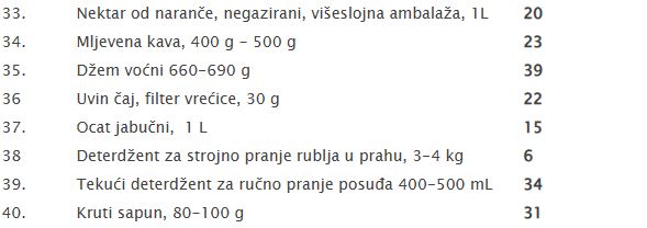 – Vezano uz proizvode (40 kategorija proizvoda za koje trgovac mora za najmanje jedan (1) artikl iz svake kategorije proizvoda istaknuti cijenu najviše do cijene određene Odlukom) utvrđeno je za 392 kategorije proizvoda koje trgovac ima u ponudi, trgovac nije za najmanje jedan artikl istaknuo maloprodajnu cijenu do najviše dopuštene cijene određene Odlukom, 629 kategoriju proizvoda nisu istaknute vizualne identifikacijske oznake za najmanje jedan artikl iz te kategorije proizvoda.