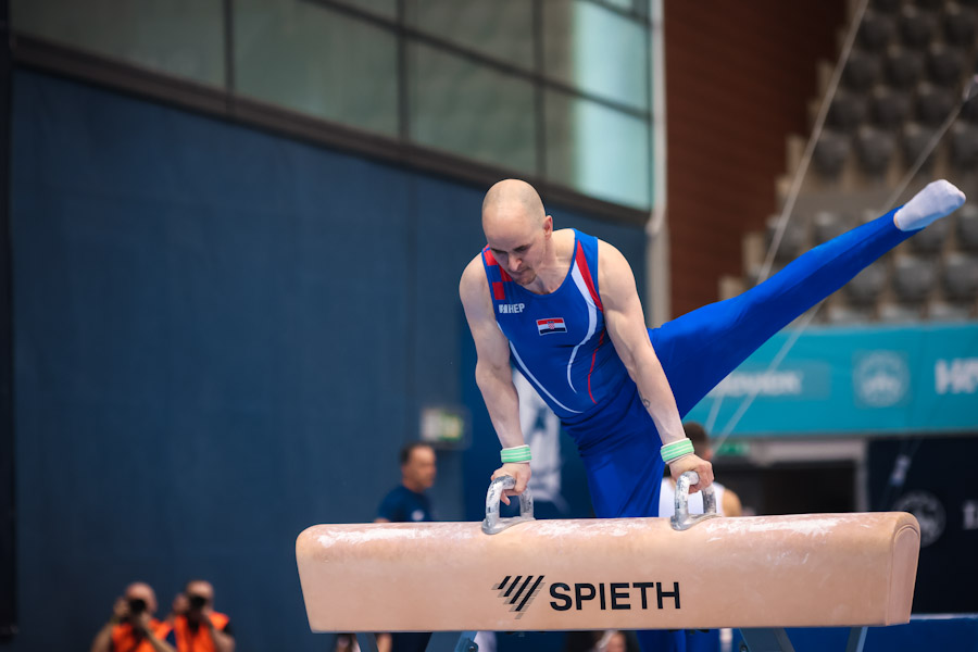 Doslovno do posljednja dva vježbača na konju s hvataljkama, dva Armenca, čekali su naši specijalisti za ovu spravu, Filip Ude i Marko Sambolec, srebro i bronca prošle godine u Osijeku. Na kraju je Marko „preživio“, kao osmi je sa 14.000 ušao u finale, dok je Filip prva rezerva sa 13.966. U nevjerojatno jakim kvalifikacijama konja najbolji je bio aktualni srebrni iz Pariza, Kazahstanac Nariman Kurbanov (14.566).