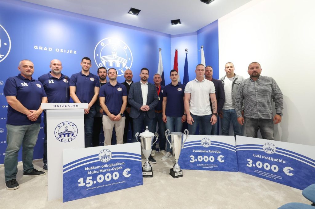 Kao priznanje za iznimne rezultate, gradonačelnik je uručio po 3000 eura Zvonimiru Rebolju i Luki Pratljačiću te 15 000 eura Muškom odbojkaškom klubu Mursa Osijek.