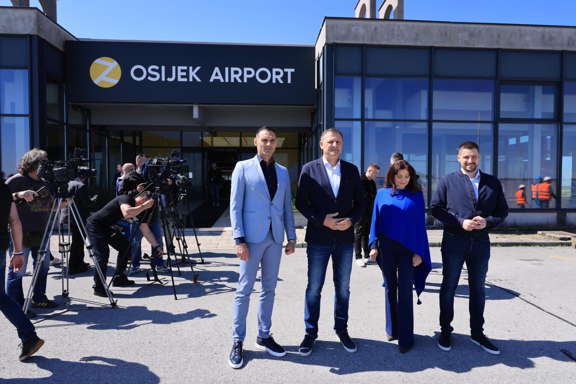 Na prostoru Zračne luke Osijek danas (13. svibnja 2025. godine) su započeli radovi na rekonstrukciji putničkog terminala ukupne vrijednosti 14, 3 milijuna eura, a njome je obuhvaćeno proširenje i reorganizacija postojeće pristanišne zgrade kako bi se zadovoljili suvremeni sigurnosno-prometni standardi. Predviđeni završetak radova je ožujak 2026. godine. Početku radova su uz direktora Zračne luke Osijek Tihomira Pejina, nazočili obnašatelj dužnosti župana Mato Lukić, gradonačelnik Grada Osijeka Ivan Radić, saborska zastupnica Nataša Tramišak, zamjenik župana Josip Miletić, saborski zastupnik Goran Ivanović i ostali gosti.