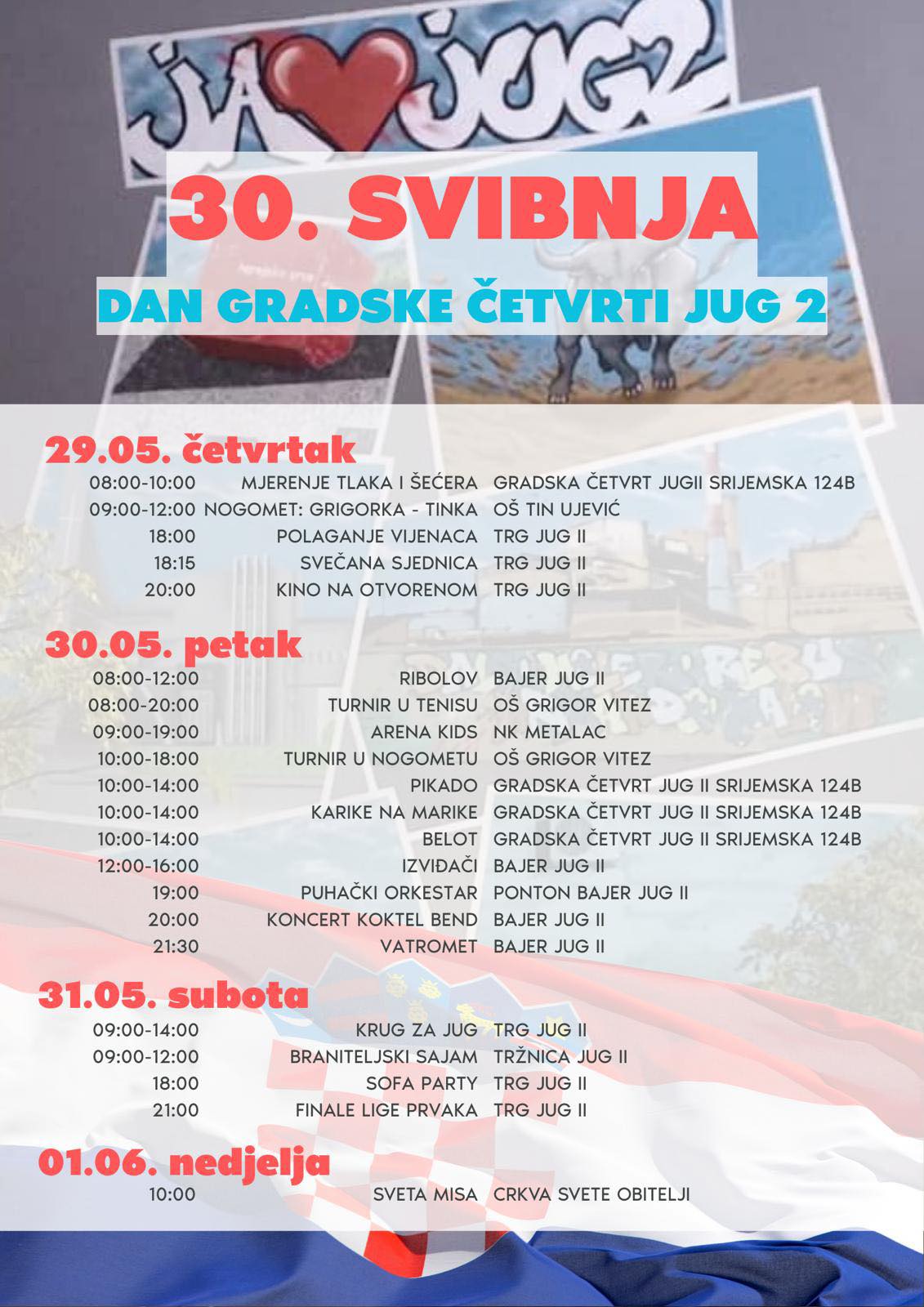 Kino na otvorenom, koncert, čak i gledanje finala Lige prvaka…, sve do vatrometa na bajer na Jugu 2 bit će upriličeno za proslavu Dana Gradske četvrti. Jer, kada Jug 2 slavi, onda slavi kako treba, čak 4 dana. Pogledajte raspored…