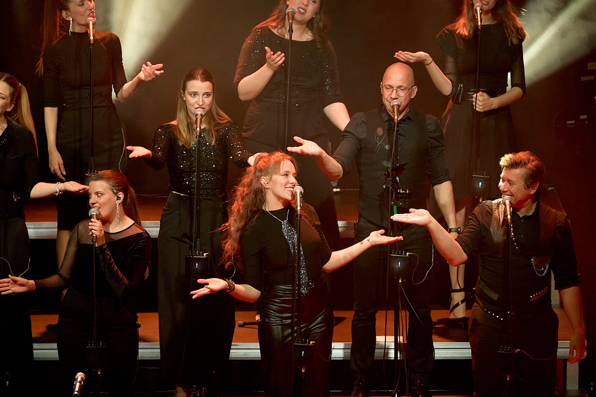 ‘Puštali su glas’ solisti i na hrvatskom, francuskom, njemačkom, slovenskom jeziku…, ‘čarolijom’ svojih glasova stvarali instrumente, orkestre, a bez imalo straha od greške u procjeni, možemo vam ovako laički reći da bi svatko od sastavnica zbora ‘ladno mogao stvarati i samostalnu karijeru. ‘Prštalo’ je sinoć u KC-u od zvuka, svjetla i energije…, bila je to uistinu spektakularna večer transformacije poznatih glazbenih numera u nešto opipljivo, bolje, radosnije, veće…