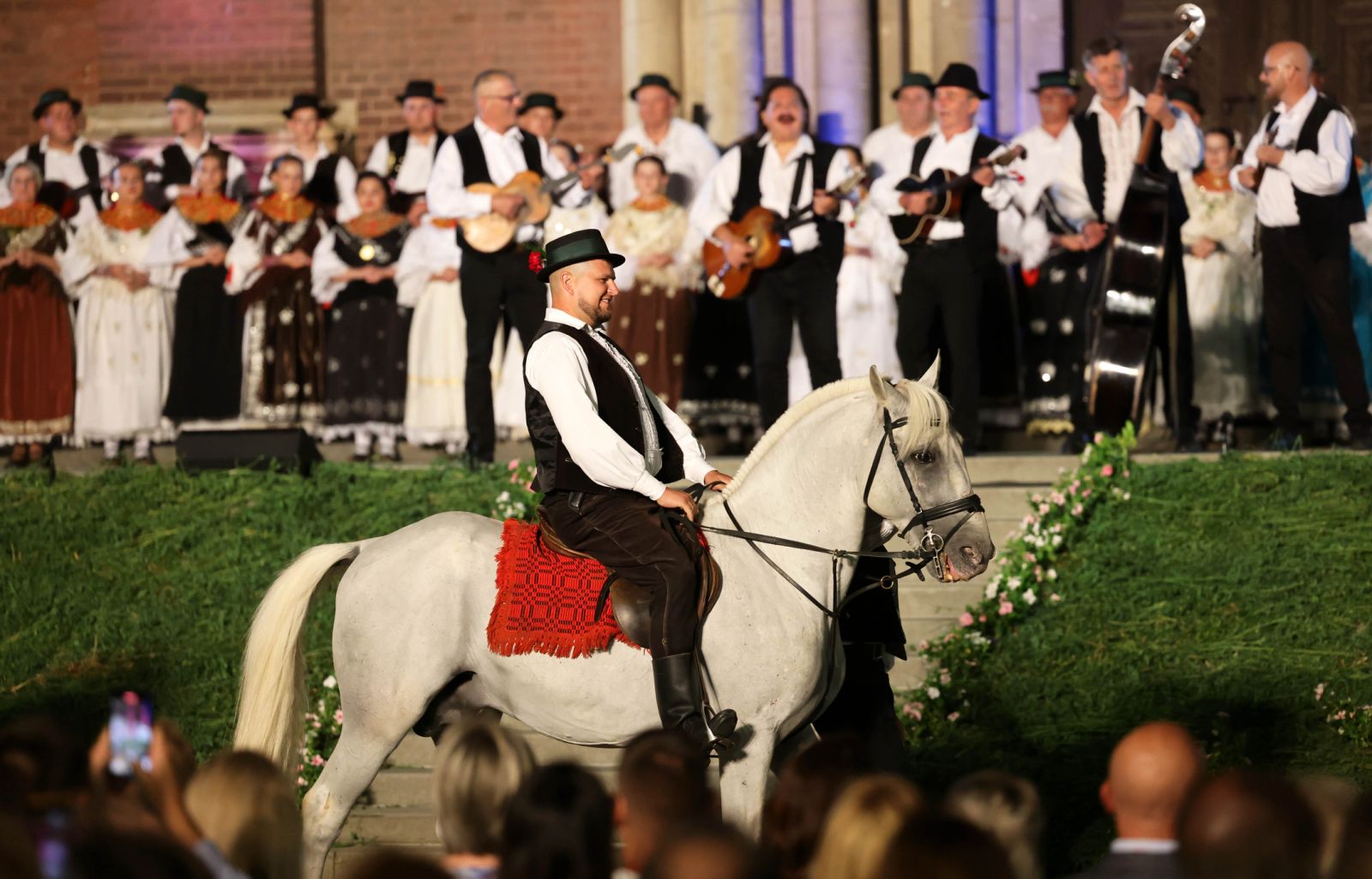 – Ovih dana smo najponosniji i najpunije nam je srce. Zato dobrodošli svi u srce Slavonije, na 59. Đakovačke vezove, večeras na scensku sliku i svečano otvaranje naše najpoznatije kulturne i turističke manifestacije, a potom nas očekuje mnoštvo kulture, tradicije, baštine, domoljublja, sve na jednom mjestu. To je ono što mogu doživjeti gosti na Đakovačkim vezovima danas i sutra, a u nedjelju od jutarnje povorke svih sudionika vezova, cjelodnevnog bogatog kulturnog programa i navečer zatvaranja u Strossmayerovom parku i ulicama Grada Đakova – kazao je gradonačelnik Đakova Marin Mandarić.