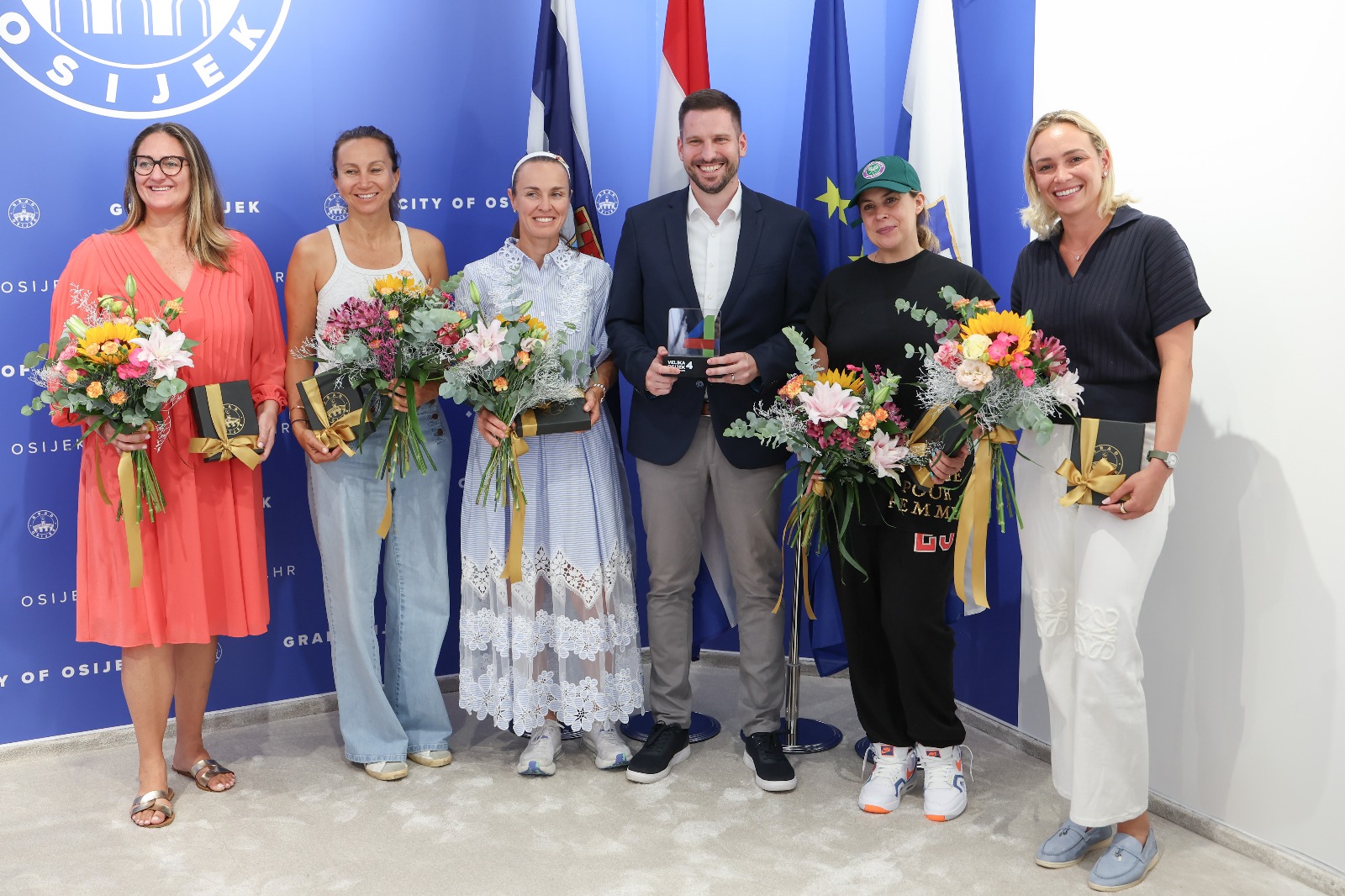 – Danas je jedan velik i poseban dan za Osijek. Danas se uposujemo na tenisku kartu svijeta. Prvi smo grad u svijetu kojima ima četiri javna besplatna terena na četiri Grand Slam podloge. Bez vizije Donne Vekić i njezine obitelji to ne bi bilo moguće. Kao gradonačelnik na svemu tome vam od srca zahvaljujem. Mi smo kao Grad bili podrška – rekao je gradonačelnik Osijeka Ivan Radić pred spomenutim tenisačicama, koje su danas sletjele u Osijek i koje će zaigrati tenis diljem Osijeka.