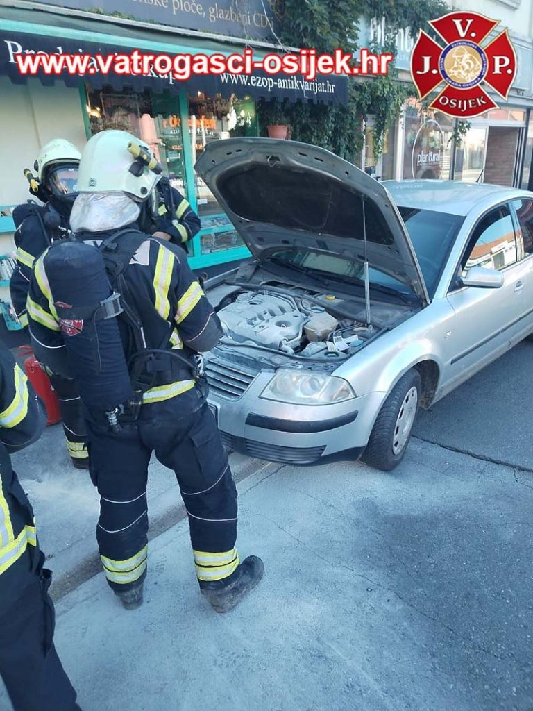 Vlasnik vozila sam je uspio ugasiti požar, a članovi JVP Osijek potom su još skinuli kleme s akumulatora i pregledali automobil.