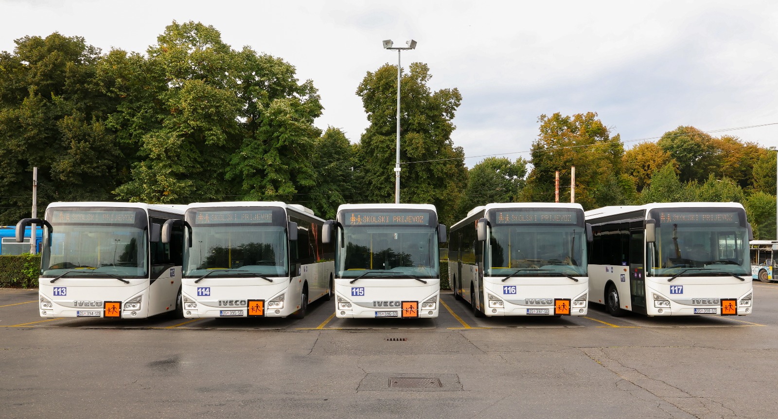 Pet novonabavljenih školskih autobusa vrijednih 570 tisuća eura od ponedjeljka je u voznom parku osječkog GPP-a.