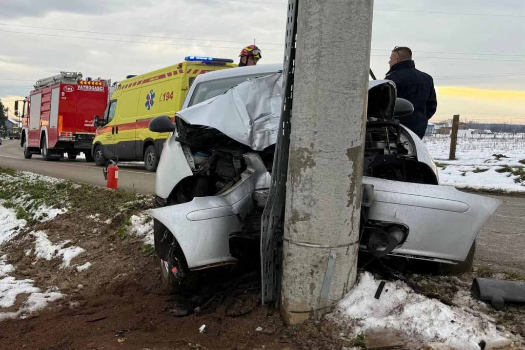 FOTO Vozačica izletjela sa ceste, u betonski stup! Ona ozlijeđena, automobil ‘razoren’…