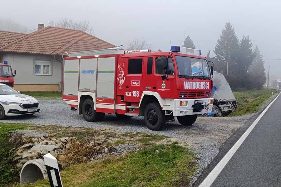– Na intervenciju izlazimo sa SUH 110, SUH SUH 150, SUH 105, s ukupno 8 vatrogasaca. Dolaskom na mjesto intervencije uviđamo da se kamion nalazi u bočnom položaju u odvodnom kanalu uz cestu, ali do našeg dolaska vozač je sam izašao iz vozila te za našim djelovanjem nije bilo potrebno. Napravili smo izvid i osiguranje da nebi došlo do zapaljena te odvajamo kleme na akumulatoru te se naša intervencija tu i završava – objavili su, uz fotografiju s mejsta događaja.