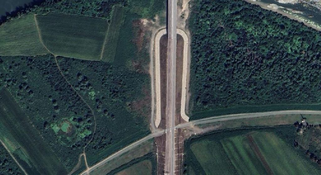 S jedne je strane Nova Gradiška, s druge Gradiška u BiH. Kada se gleda iz Hrvatske, desno od prijelaza Stara Gradiška, kod Gornjeg Varoša, zračni snimak otkriva nasip u obliku slova ‘U’. Riječ je o nasipu u blizini novog graničnog prijelaza u Čatrnji, a koji je nije ni otvoren. Zakrivljeni beton sprskim medijima izgleda kao ustaška simbolika, uznemirujući sadržaj, tko zna što sve…