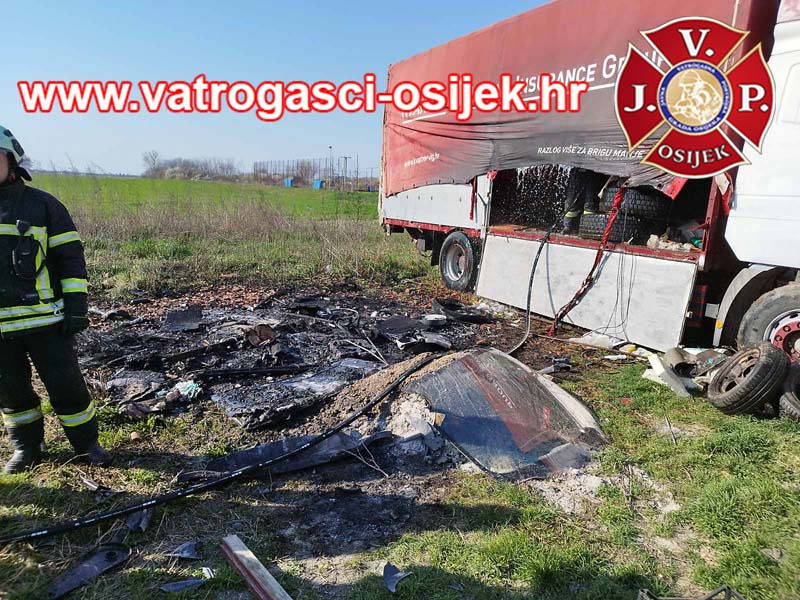 – Vatrogasci Osijeka gasili su požar starih guma i dijela cerade na parkiranom kamionu u Višnjevcu – izvijestio je rano jutros Centar 112 Osijek, a o uzroku i okolnosti oglasiti će se Policijska uprava osječko-baranjska tijekom dana, nakon jučerašnjeg očevida.