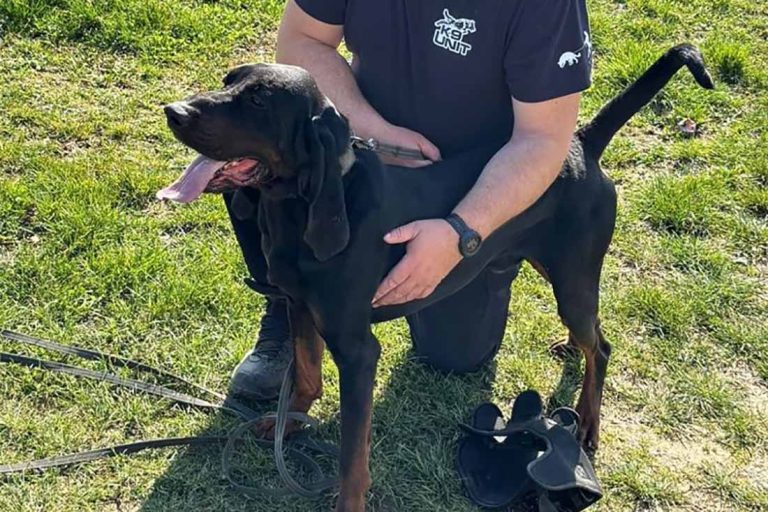 On je Dyllon, američki gonič rakuna, star dvije i pol godine. Vodi ga policajac Darko Puškarić. Prošli su specijalističku obuku...