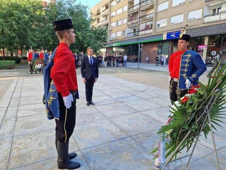 Polaganjem vijenaca i paljenjem svijeća pred Spomen obilježjem hrvatskim braniteljima i stradalnicima Domovinskog rata Osječko-baranjske županije na osječkom Trgu slobode...