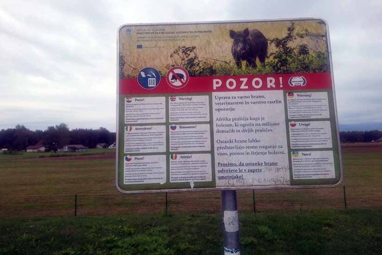 Na slovenskom, hrvatskom, talijanskom, poljskom, njemačkom, ukrajinskom jeziku..., duž odmorišta slovenskih autocesta već neko vrijeme table upozoravaju na afričku svinjsku...